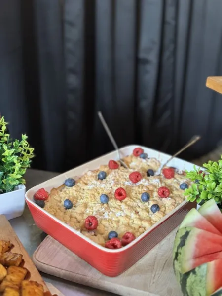 Alle desserts worden verzorgd gepresenteerd, zodat je gasten zelf hun favorieten kunnen kiezen en het buffet een feestelijke beleving wordt. Perfect als zoete afsluiter bij je BBQ.