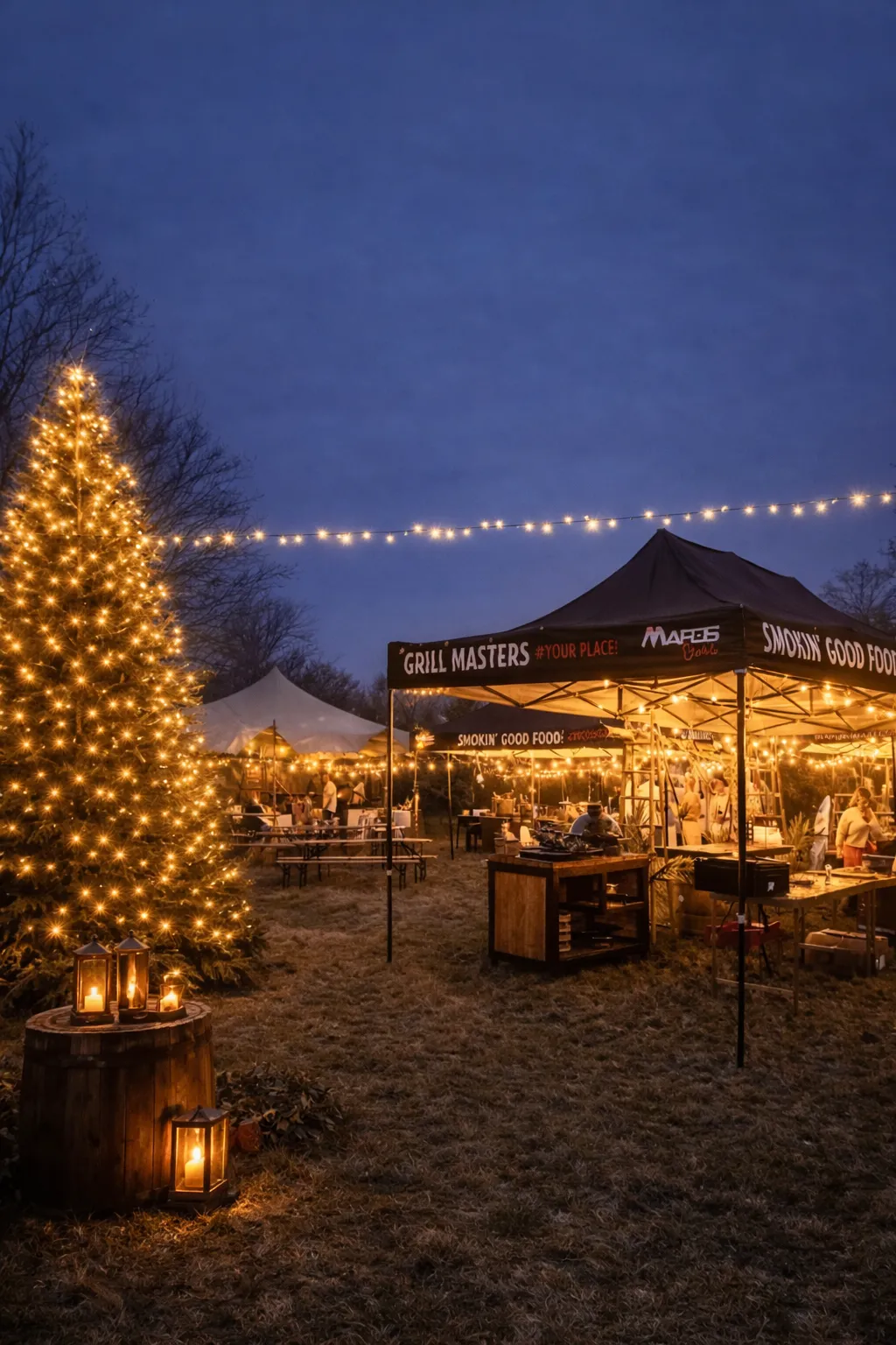 Wat deze barbecue extra bijzonder maakt, is de winterse aankleding en sfeer. Wij creëren een warm barbecueplein met vuur, sfeerverlichting en decoratie die uitnodigt om samen te komen. Een setting waarin gasten graag blijven staan, genieten en opwarmen rondom het vuur.