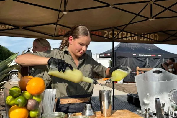 Naast het culinaire aanbod verzorgden wij ook de bar, waar gasten konden genieten van gekoelde dranken gedurende de avond. Als bijzondere afsluiter werden er versgebakken poffertjes geserveerd, een verrassend en geliefd dessert dat perfect paste bij de informele festivalsfeer.