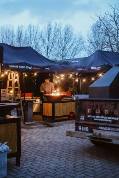Verspreid over het terrein stonden onze Big Green Eggs, OFYR’s en de BBQ-truck centraal opgesteld. Onze Vuurmeesters bereidden hier live diverse gerechten op open vuur. Van malse vleesgerechten tot verfijnde vis en smaakvolle sides, alles vers bereid en met aandacht geserveerd. Gerechtjes die perfect passen binnen het festivalconcept, met de kwaliteit en uitstraling die je mag verwachten.